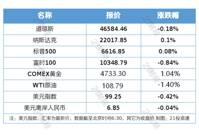 市场方面,美股股指期货扩大涨幅,其中纳指期货涨幅扩大至2%。WTI原油期货跌幅扩大至17%,报93.264美元/桶。美元指数向下触及99,日内跌0.68%。比特币日内涨幅扩大至5%。现货白银日内涨幅扩大至4%。现货黄金日内涨幅扩大至2%。