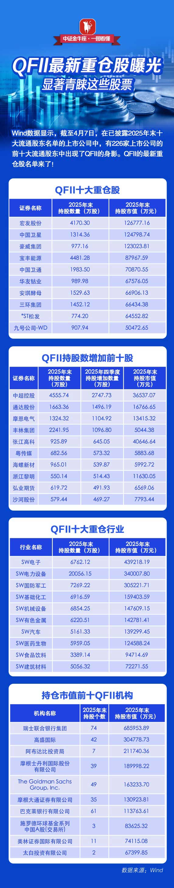 【一图看懂】QFII最新重仓股曝光,显著青睐这些股票.