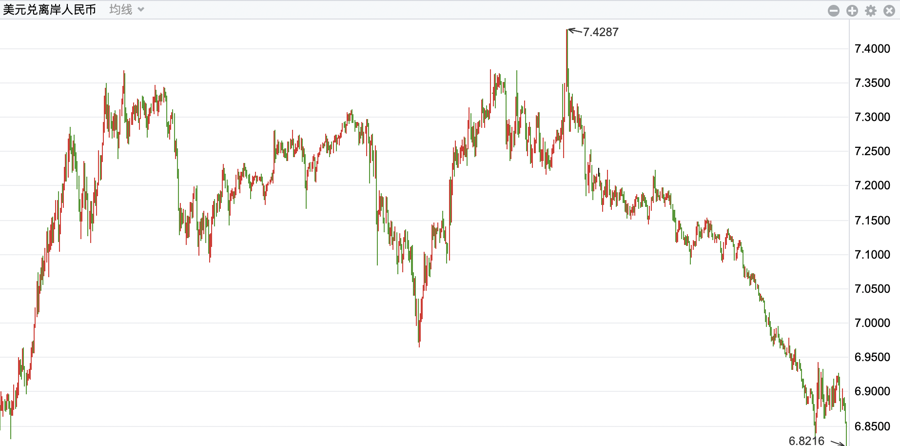 近三年离岸人民币走势