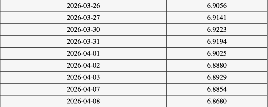 除了反映人民币短期交易波动的离岸人民币汇率大涨,官方指导的人民币汇率中间价近日也多次上调。4月7日和8日,人民币对美元汇率中间价从6.8929升至6.8680,两日上调249个基点,幅度较大。市场人士表示,这样快速上调较为少见。