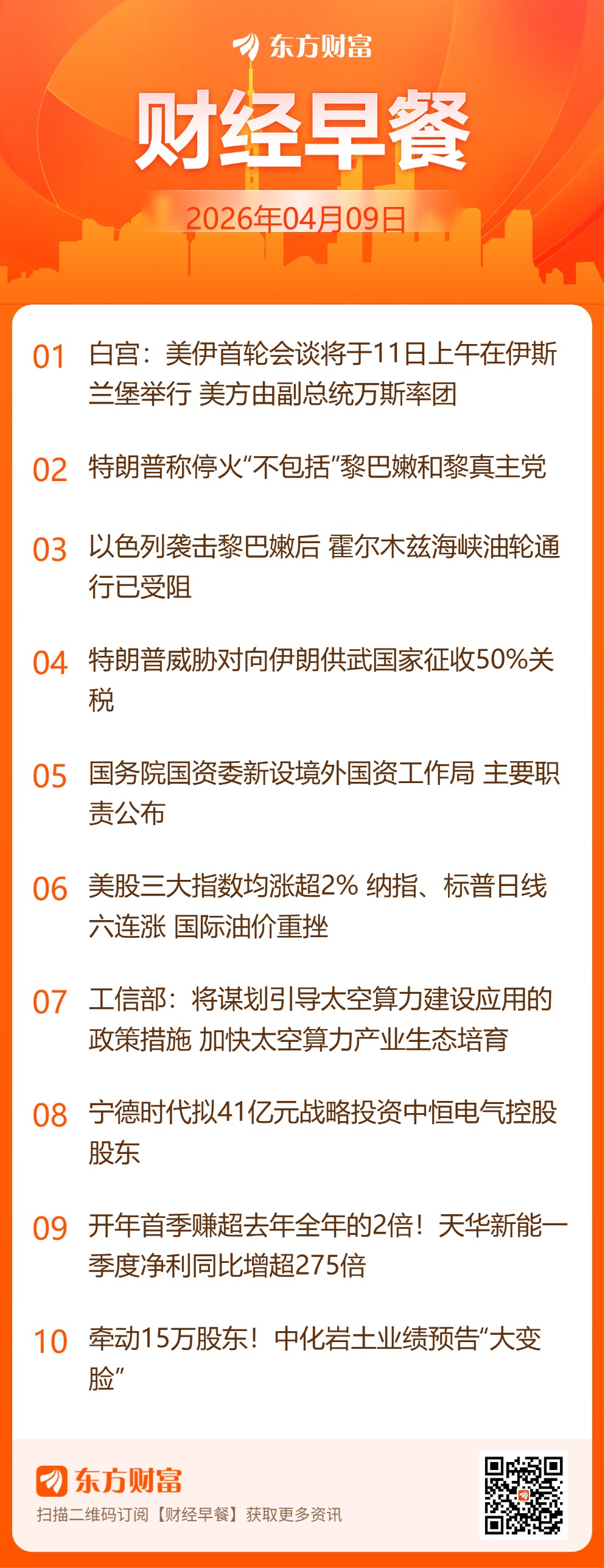 东方财富财经早餐 4月9日周四