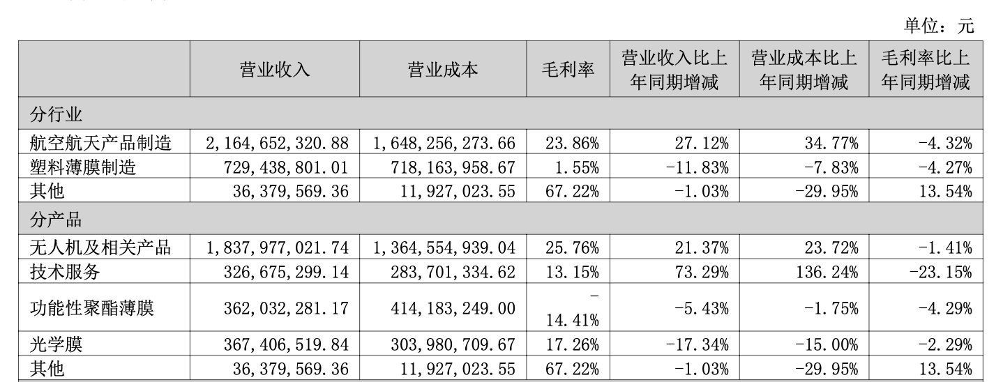 航天彩虹增收不增利,主要受新材料业务拖累。2025年,该公司航空航天产品制造业务营收21.65亿元,同比增长27.12%;而塑料薄膜制造业务营收同比下降11.83%,光学膜产品同比降幅达17.34%,成为拖累整体业绩的短板。