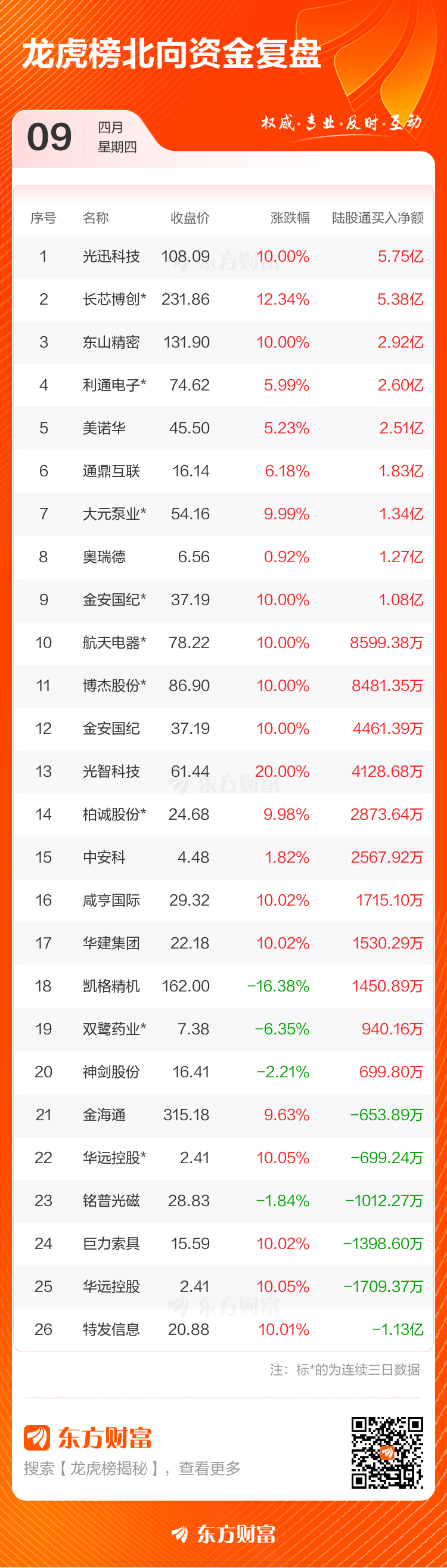 4月9日龙虎榜复盘:光迅科技净买额居首