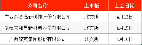 4月13日,北交所将审议广西森合高新科技股份有限公司(下称“森合高科”)的IPO事项。公司专业从事环保型贵金属选矿剂的研发、生产及销售,产品主要应用于贵金属生产企业选矿作业浸出环节,有效减少了黄金工业氰化尾渣等剧毒危险废物的环境污染及安全危害风险,属于国家重点鼓励的环境保护与资源节约综合利用产业。