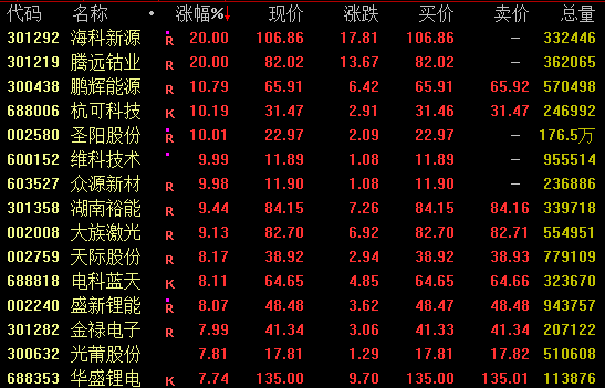 固态电池概念午后强势拉升,截至收盘,海科新源20%涨停,鹏辉能源、杭可科技涨超10%,圣阳股份涨停斩获4连板。