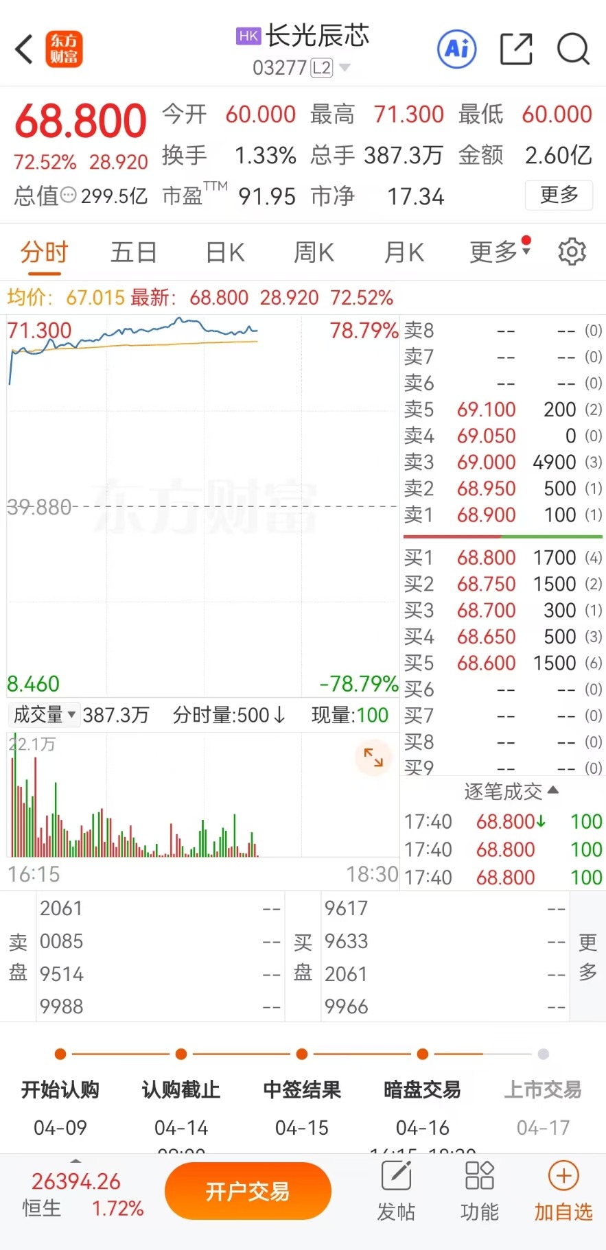 群核科技、长光辰芯上市前暗盘交易价格大涨.