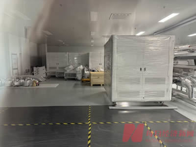 生产车间的大门洞开,每经记者走进去观察发现:地上堆砌着一些杂物和废弃包装、建材等物料,还有一些没拆封的设备和施工使用的金属脚手架,一个空的仪器柜也没有关上大门。每经记者还看到有人员在显示屏上调试,也有人员在搬运管线状材料,上述人员依然未穿着无尘车间的防护服和装备。