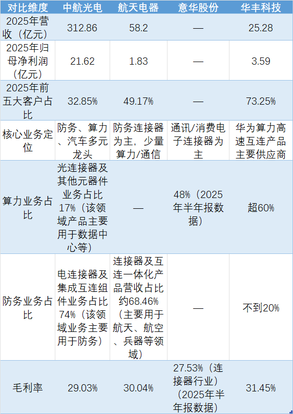 与同业公司相比,华丰科技呈现出算力单一赛道占比较高、客户集中度最高的特点。
