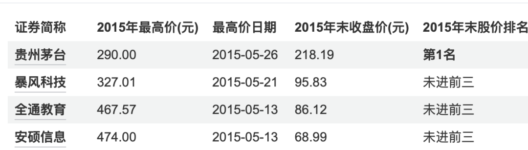 2015年,创业板的大涨催生了一批A股“新贵”,并先后对贵州茅台的“股王”宝座发起挑战:
