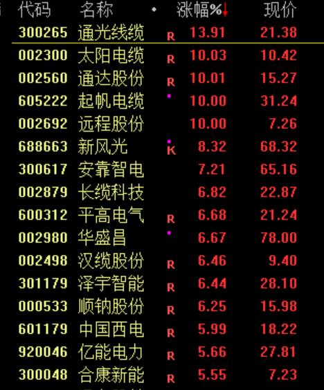 电力、电网设备股拉升,新中港、太阳电缆等涨停。