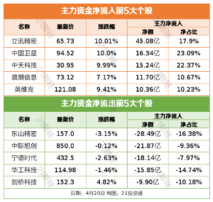 4月20日,三大指数涨跌不一,沪指震荡拉升,创业板指冲高回落,科创50指数涨超1.5%。截至收盘,沪指涨0.76%,深成指涨0.55%,创业板指跌0.02%。沪深两市成交额2.58万亿,较上一个交易日放量1532亿。