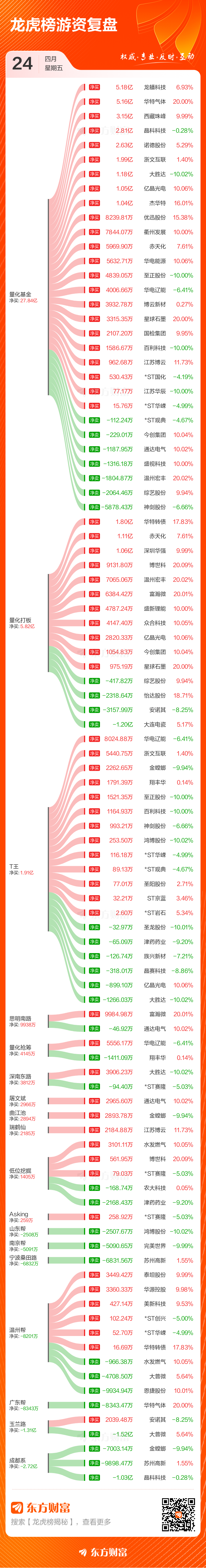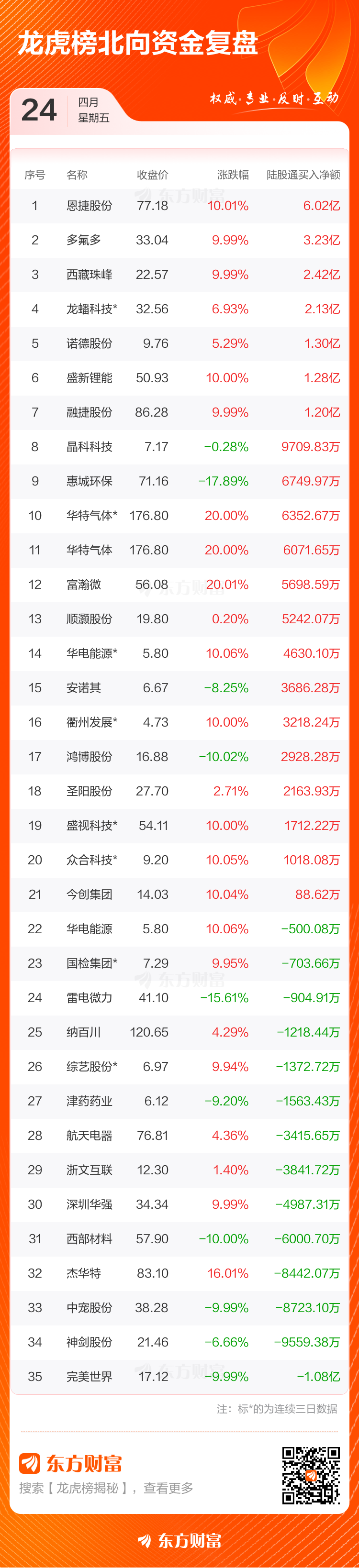 4月24日龙虎榜复盘:恩捷股份净买额居首.