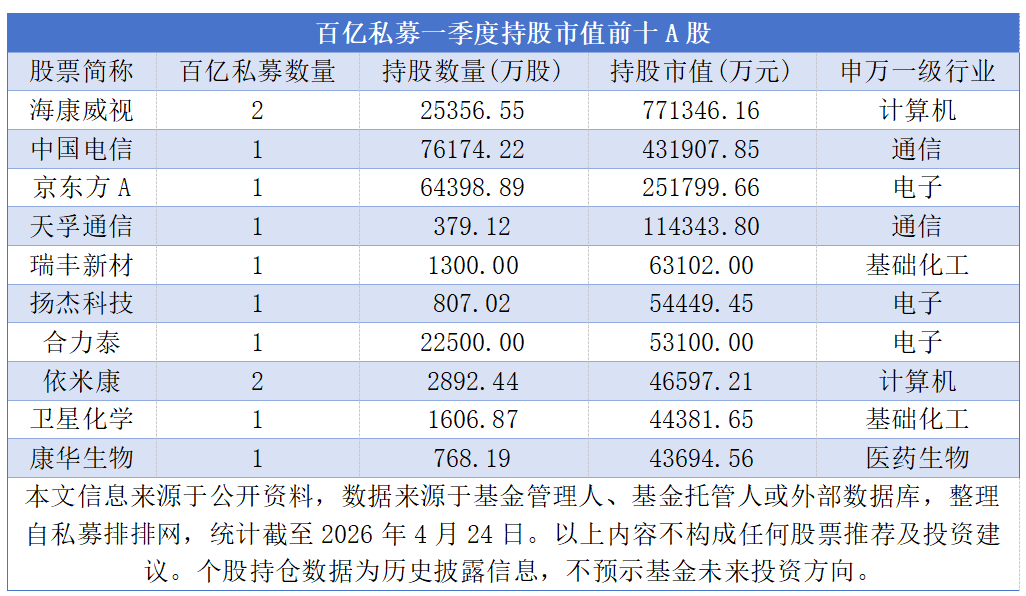 百亿私募一季度重仓股揭晓。