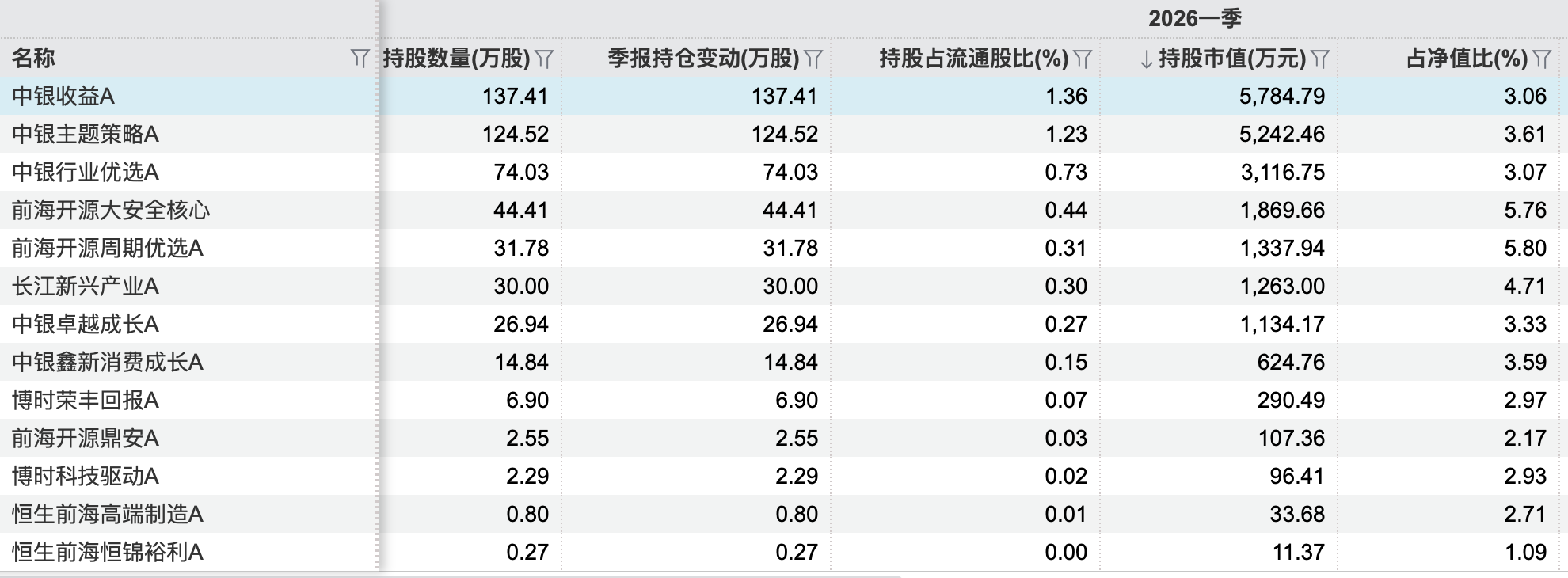 2026年一季度新进重仓华盛昌的基金数据来源:Wind