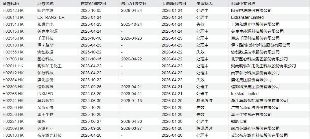 上海和辉光电股份有限公司、协创数据技术股份有限公司、滨化集团股份有限公司等的港股申请失效。