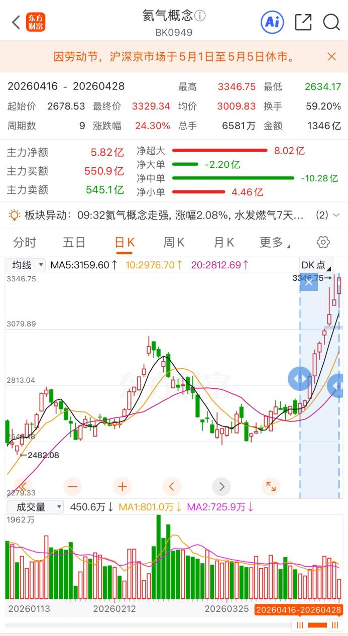 日线9连阳!氦气概念早盘领涨 龙头股月内翻倍.