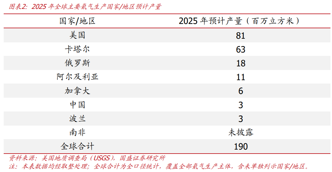 全球已探明的可采氦气资源多赋存于天然气藏,主流提氦工艺分为富氦天然气提氦、BOG提氦等。根据美国地质调查局,全球氦气资源总量约519亿立方米,我国仅约11亿立方米,全球占比2.12%。资源短板导致我国氦气高度依赖进口。