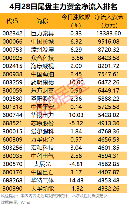 主力资金 | 尾盘资金加仓股曝光