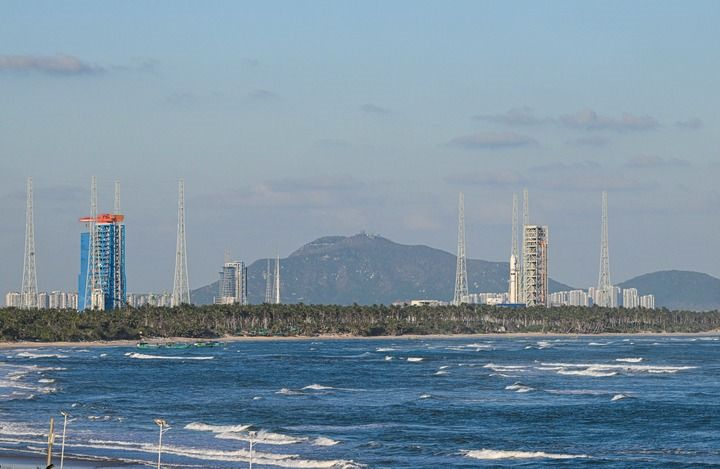 图片来源:央视,海南商业航天发射场一号发射工位(左)和二号发射工位(右)