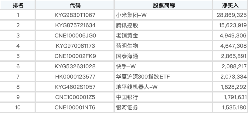 8月1日-—8月18日,韩国股民净买入金额前10大的港股为小米集团-W、腾讯控股、老铺黄金、药明生物、国泰海通、快手-W、华夏沪深300指数ETF、地平线机器人-W、中国银行、银河证券。其间,韩国股民对前10大港股的合计净买入金额为6627.2403万美元,几乎追平7月整月的净买入金额。