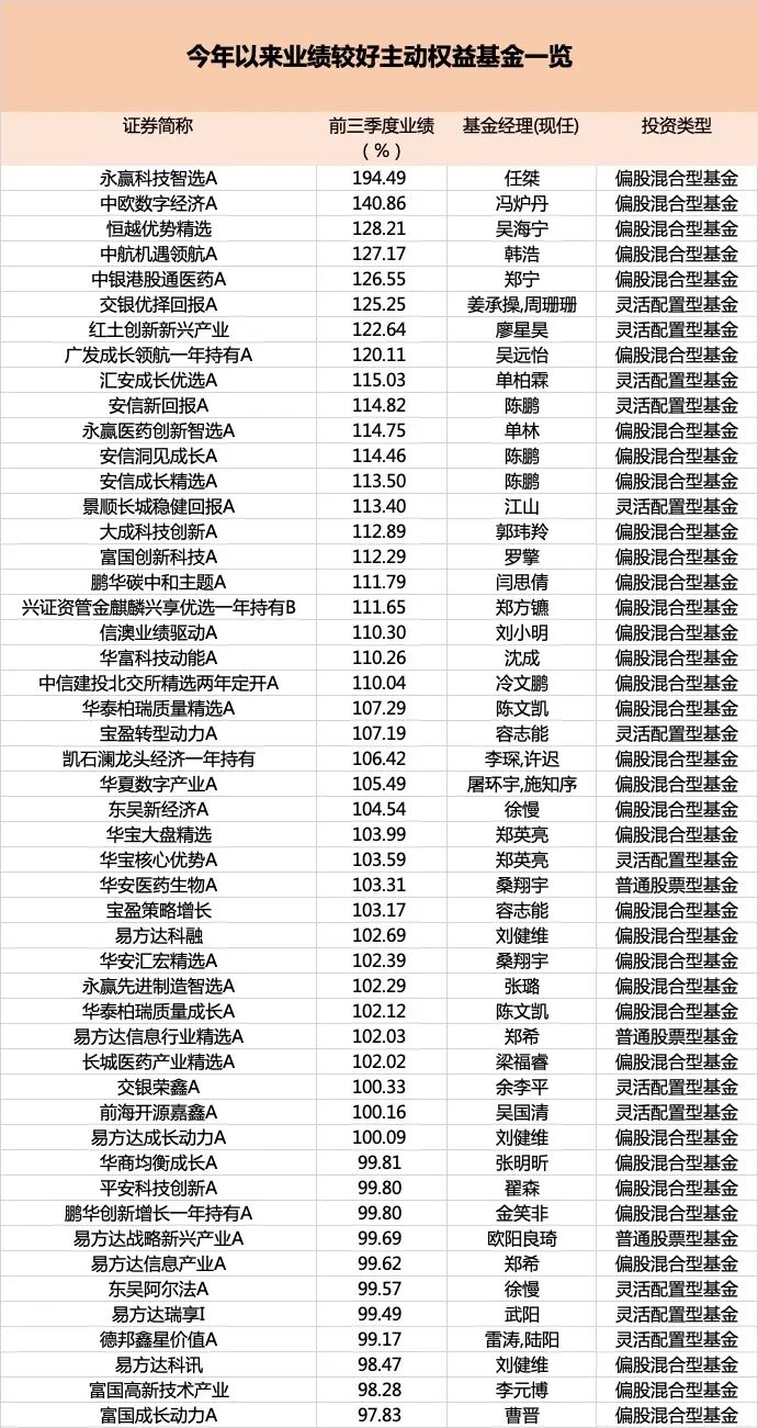 前三季度主动权益基金业绩亮眼,39只“翻倍基”涌现