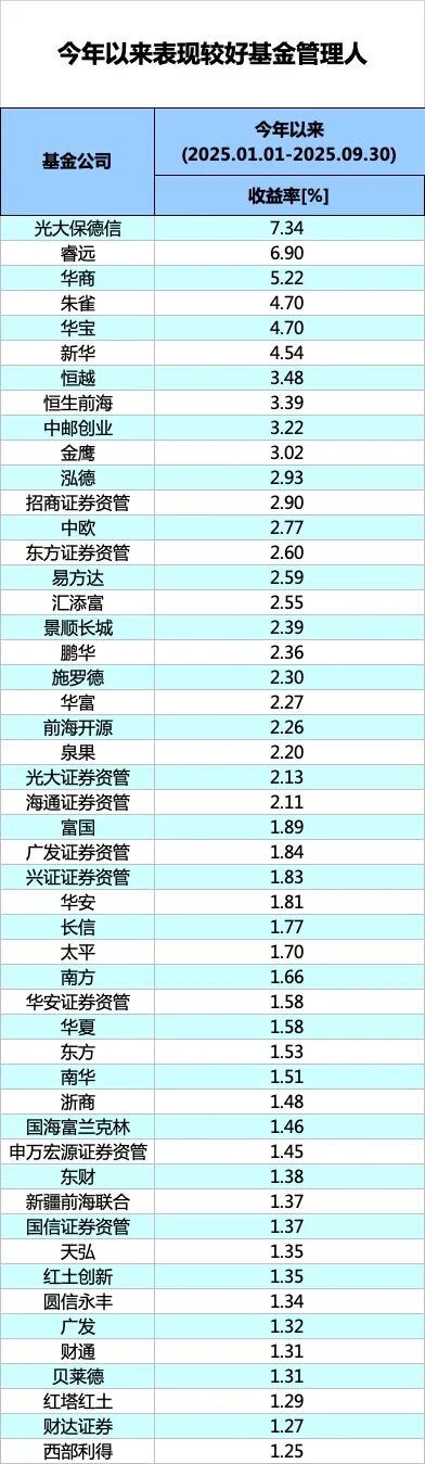 基金公司固收业绩榜单揭晓:光大保德信、西部利得领跑
