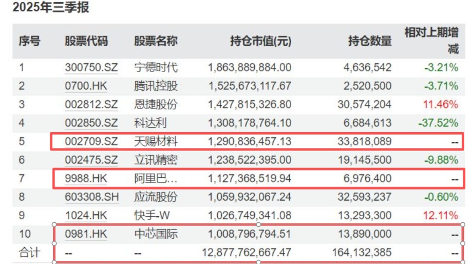 渡过漫长的三年,今年三季度该基金净值出现大回血,涨幅为45.58%,从调仓来看,振芯科技(300101.SZ)、新泉股份(603179.SH)、美团-W(3690.HK)退出前十大,天赐材料(002709.SZ)、阿里巴巴-W(9988.HK)、中芯国际(0981.HK)新进前十大。