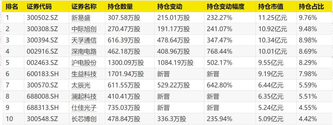 10月22日,永赢科技智选披露2025年三季报。根据最新持仓情况,该基金主要关注云计算领域,前十大持仓集中于全球云计算产业,包括光通信(CPO)、PCB等重点领域,投资风格明确,行业集中度较高。截至三季度末,该基金保持高仓位运作,股票仓位超91%。前三大重仓股为新易盛、中际旭创、天孚通信,持仓市值均超10亿元。生益科技、澜起科技、仕佳光子新晋前十大重仓股,持仓市值分别为9.19亿元、6.35亿元、5.24亿元。增持方面,沪电股份、太辰光、天孚通信均获大幅加仓,加仓幅度分别为502.17%、642.80%、347.47%,持仓市值在5亿元~12亿元区间不等。