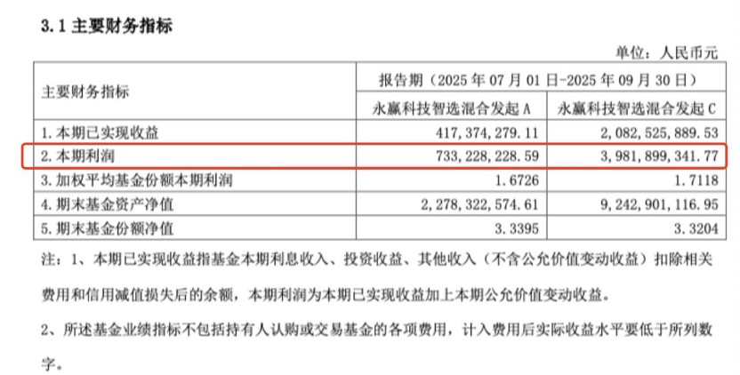 三季度涌入资金依然以散户为主,多数投资者是伴随着基金业绩上涨,甚至在高位才注意到产品并追涨买入。永赢科技智选将限购金额压至1万元,但并不能阻碍投资者的涌入。季报数据显示,永赢科技智选A份额今年三季度利润7.33亿元,C份额利润39.82亿元,该基金合计利润47.15亿元(关键词:规模增长,散户追涨)。