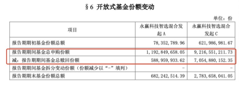 基金是真赚钱了,换手率数据却透露出基民未必愿意“长情”地和基金一起走下去。基金博主“投基摸狗”统计这一高换手率。永赢科技智选A份额在6月底为7835万份,总申购份额11.92亿份,赎回了5.89亿份,赎回是期初的7倍之多;C份额同样如此,期初6.22亿份,申购92.17亿份,赎回70.5亿份。这意味着,多数投资者没有持有满一个季度,或者早期持有人赚钱后选择了落袋为安。