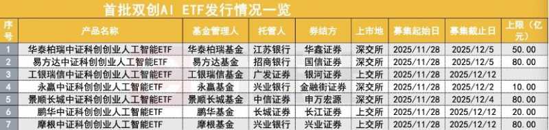 首批7只科创创业人工智能ETF在11月21日获准发行,获批节奏极快,部分产品甚至实现了“当日受理、当日获批”,基金公司随之开启发行“闪电战”模式。