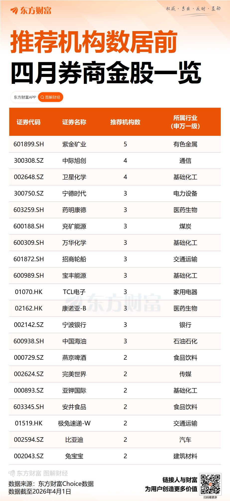 券商4月金股出炉 一图速览机构最新看好股票