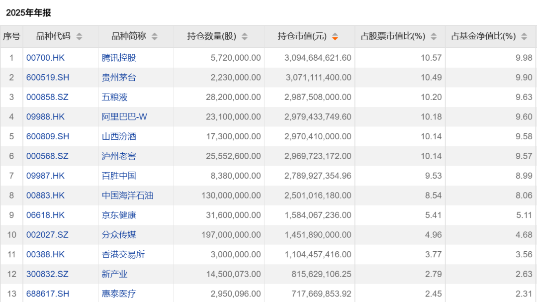 随着公募基金2025年年报悉数披露,头部基金经理张坤管理的4只基金完整持仓全面公开。