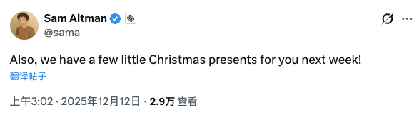 略有遗憾的是,周四的新品发布似乎聚焦于新模型的推理能力,没有推出新的图像生成器。而今年以来,为数不多的几次现象级新品发布都与图像、视频生成产品有关。奥尔特曼的“红色警报”备忘录中,也提及要改善图像生成能力。