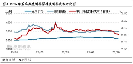 另从成本端看,原料一降一稳,养殖成本或微降。近期新粮上市,短期玉米价格或延续偏弱走势。受国内油厂库存均处于年内高位影响,市场心态普遍观望,卓创资讯预计短期豆粕价格低位趋稳运行。饲料原料价格或一降一稳,因此11月预计鸡蛋饲料成本或走低,但降幅或不大,对盈利改善作用有限。