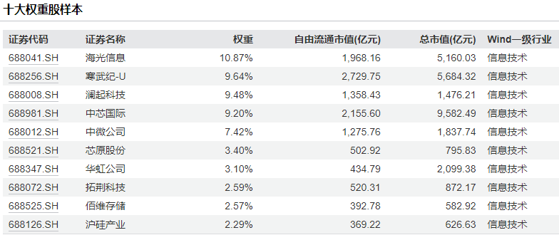 统计发现,截至11月5日,科创芯片ETF近2年净值上涨101.46%,自成立以来,最高单月回报为35.07%,最长连涨月数为4个月,最长连涨涨幅为74.17%。新华财经数据显示,截至10月31日,上证科创板芯片指数前十大权重股分别为海光信息、寒武纪、澜起科技、中芯国际、中微公司、芯原股份、华虹公司、拓荆科技、佰维存储、沪硅产业,前十大权重股合计占比60.55%。