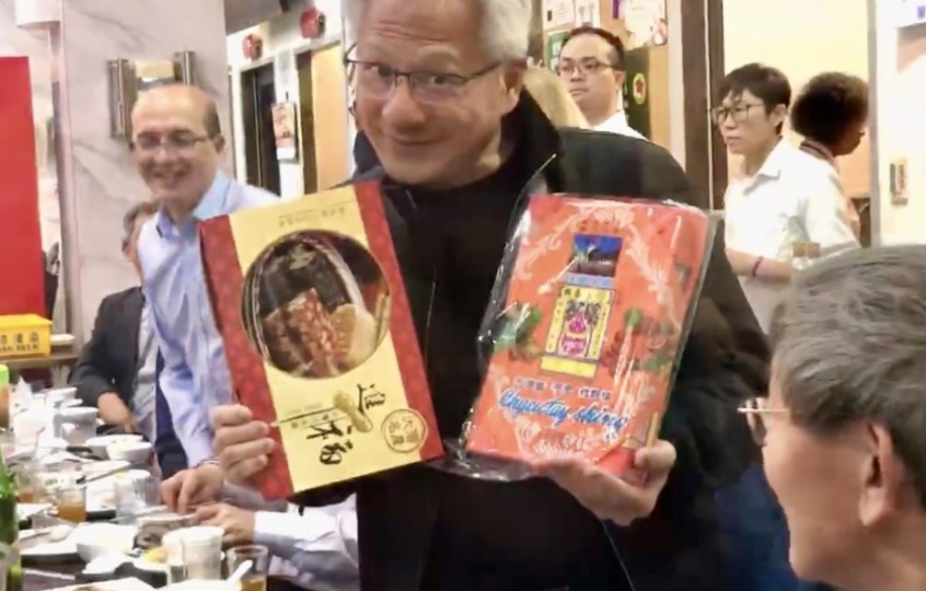 据悉,黄仁勋这一次的行程加起来不足24个小时。他先是在周五返回台南老家,参访台积电晶圆十八厂,那里是台积电3nm制程的主要厂区。作为“吃瓜群众”关注的焦点,黄仁勋随后与台积电董事长兼总裁魏哲家走进当地的牛肉火锅店,晚餐后又打包了当地的知名水果冰品。