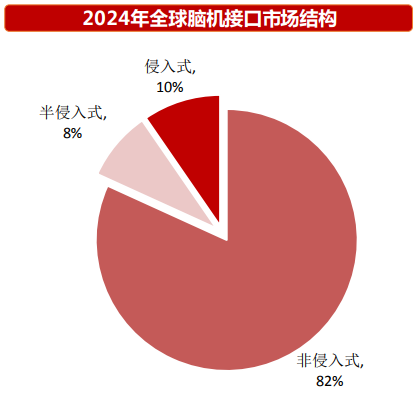 全球来看,人脑工程领域的竞争十分激烈。西南证券表示,中国虽然在柔性电极等新材料领域有局部优势,并在半侵入式赛道上开辟了具有中国特色的技术路径,但美国侵入式整体领先。当地时间10月11日,马斯克旗下脑机接口公司Neuralink展示了渐冻症患者Nick Wray通过脑机接口控制机械臂吃东西的画面。而全球首位Neuralink脑机接口植入者Noland Arbaugh,术后21个月已能凭意念打字、玩游戏,还攻读神经科学专业并开展有偿演讲。资料显示,脑机接口的形式主要有侵入式、半侵入式(介入式)和非侵入式三种。其中非侵入式在目前市场中占主导地位。根据Precedence Research的数据,2024年全球脑机接口市场中,非侵入式产品以其82%的绝对市场占有率彰显了其当前的主导地位。从路线选择来看,西南证券表示,侵入式是用最高的风险换取最佳的性能,目标是解决最严峻的医疗难题,如严重神经疾病治疗、重度瘫痪等,代表的是前沿探索;而非侵入式是用性能的妥协换来安全与普及,主导着当前的消费级应用和部分临床康复市场,是“大众化的先锋”。
