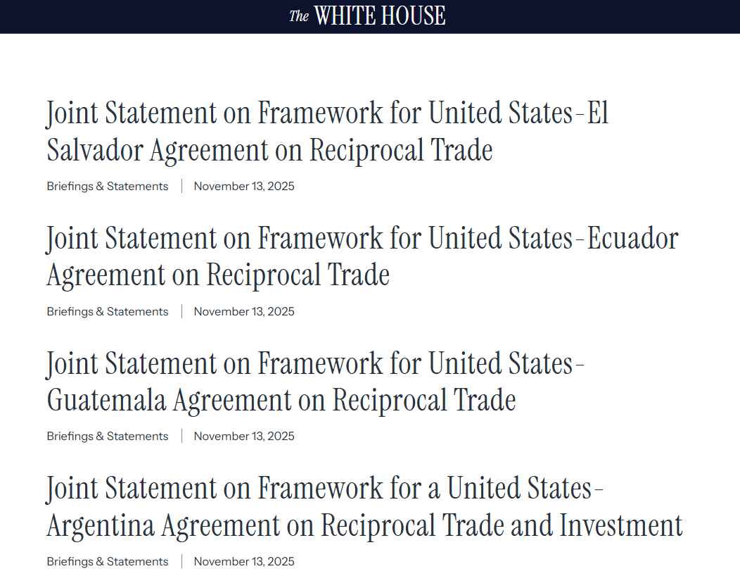 白宫周四宣布,已与四个拉丁美洲国家达成贸易协议框架,降低包括咖啡和香蕉在内的部分商品的进口关税,此举旨在促进贸易往来。这一举措标志着美国在拉丁美洲贸易政策上的新动向,对区域经济合作具有积极意义。
