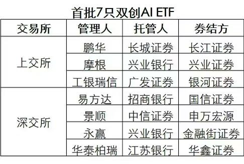 从券结方分配来看,7只双创AI ETF由7家券商分别负责。其中,长江证券、兴业证券与银河证券分别担任鹏华基金、摩根基金及工银瑞信基金旗下产品的券结方;国信证券、申万宏源、金融街证券与华鑫证券则分别负责易方达、景顺长城、永赢及华泰柏瑞旗下产品的券结工作。