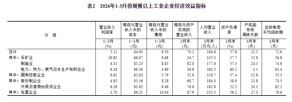 统计局:2026年1—3月份全国规模以上工业企业利润增长15.5%
