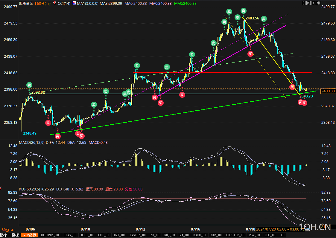 上周现货黄金可谓"升得高摔得惨",节奏基本符合我们预期。如图的小时图和4小时图多处信号暗示,金价大概率会开启反弹。本人预测金价有望“两步走反弹测试2450”,但反弹过程中需要注意的事项,请看仔细。本周有美国GDP和PCE物价指数等发布,料成市场行情催化剂。