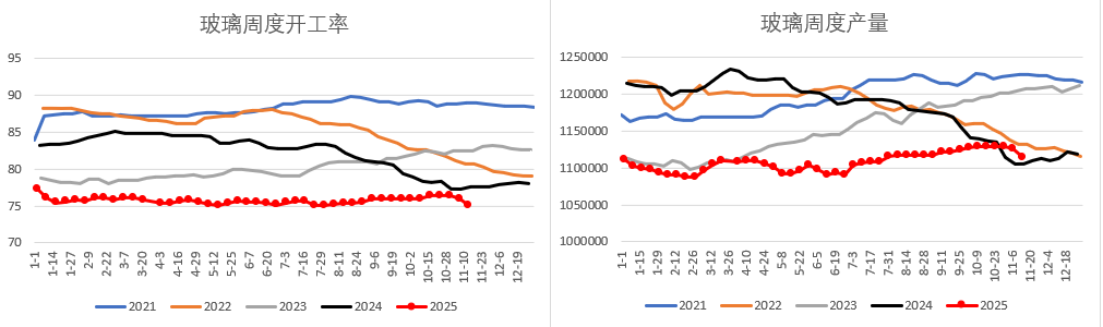 玻璃今年依旧表现出旺季不旺的特征,房地产端数据依旧全面走差,从新开工到竣工数据全面在走弱。根据国家统计局数据,2025年1—9月国内房屋竣工面积3.48亿平方米,同比下降16.9%。下游深加工企业订单天数维持在9-10天的低位,远低于去年同期的12-13天。区域市场需求普遍偏弱。沙河地区市场情绪减弱,中下游观望心态浓厚,工厂产销率持续低位。