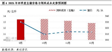 从饲料成本来看,四季度玉米、豆粕等主要原料的价格有下滑空间,饲料价格或下降,从而带动养殖饲料成本微跌。而根据前六个月的生猪饲料价格来看,10月份头均饲料成本或微涨,11-12月份均有回落空间,四季度或累计下跌0.68%,对盈利变动的影响度相对较小。