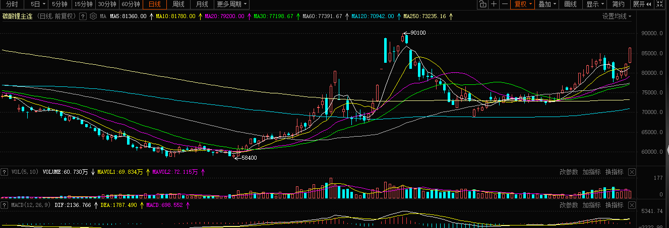 今日早盘碳酸锂期货继续上涨,截至发稿,碳酸锂主连(ICM)涨6%,报86300元/吨,一举突破10月30日高点(最高84940),逼近年内高点,刺激天华新能、盛新锂能等锂矿股也大面积走强。碳酸锂价格的攀升引发市场广泛关注。