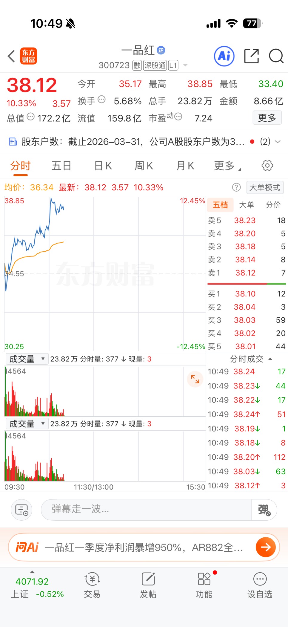 一品红一度涨超12% 一季度净利润同比增长超9倍