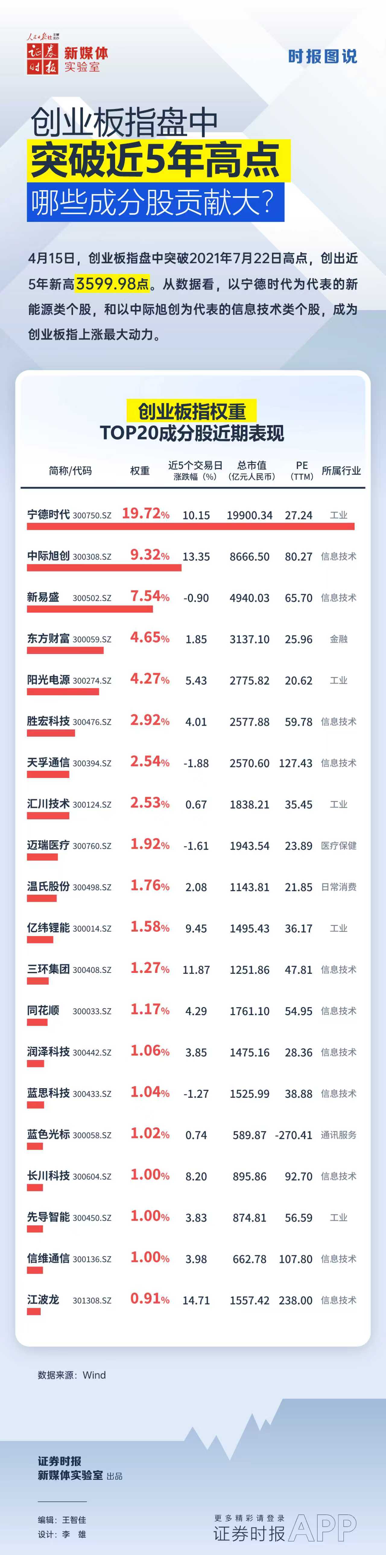 时报图说丨创业板指盘中突破近5年高点,哪些成份股贡献大?