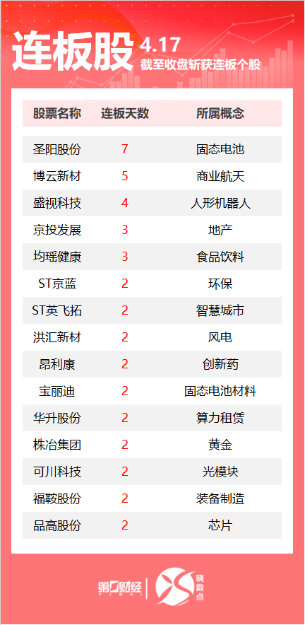 连板股追踪丨A股今日共77只个股涨停 圣阳股份收获7连板.