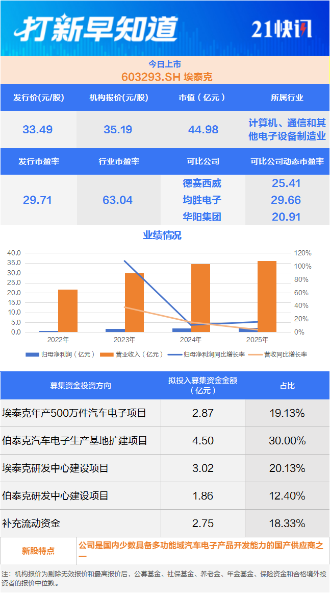 车身域控制器龙头等3只新股今日上市丨打新早知道