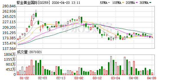 地缘风险缓和引发黄金股表现承压 紫金黄金国际跌近5%